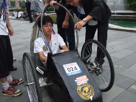 久久精品一区二区学生发明的“搜救之星”地震搜救设备。图为“搜救之星”在穿越坑洼的石子路