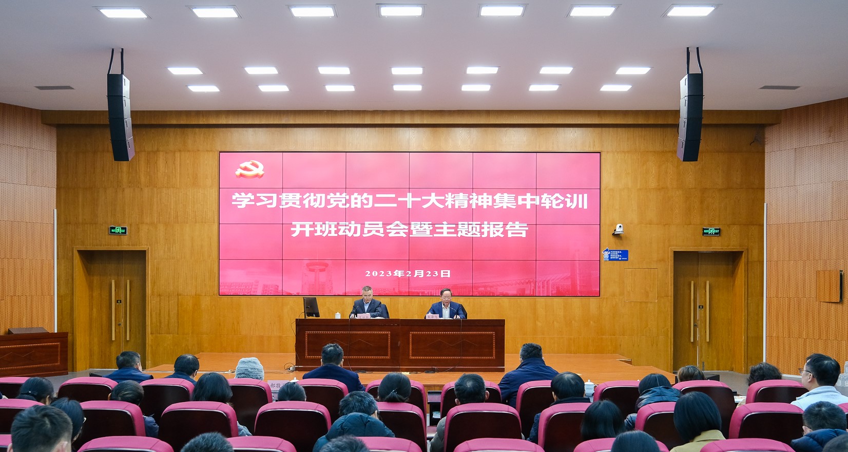 为深入学习贯彻党的二十大精神,根据省委组织部、省委教育工委相关要求和统一安排,2月23日下午,我校召开学习贯彻党的二十大精神集中轮训动员会,学校全体中层干部、科级干部、组织员以及部分党支部书记参加。校党委书记王兴杰作开班动员讲话,并以“学习贯彻党的二十大精神,为中国式现代化培养高质量数字人才”为题作首场主题报告。会议由校党委副书记、校长朱泽飞主持。