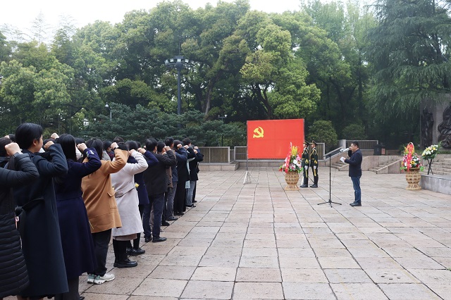 “我志愿加入中国共产党,拥护党的纲领……”在英雄的烈士纪念碑前,面对鲜红的党旗,在机关党委组织委员潘申洲同志的带领下,全体党员,面向党旗,举起右手,重温了入党誓词。随后,大家一起瞻仰了烈士纪念碑,并缓步绕行纪念碑一周,敬献鲜花,接受了一次党性再教育和精神洗礼。