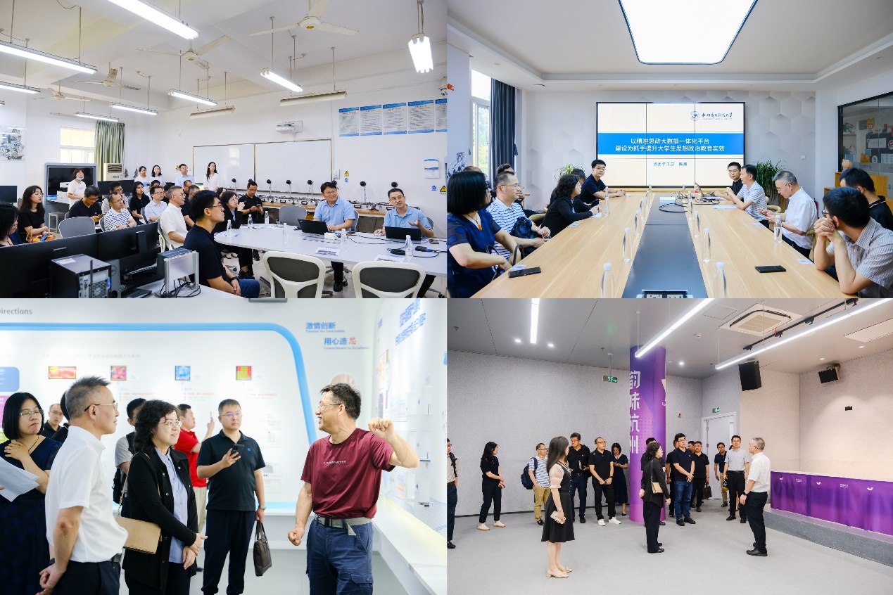 吴绮敏一行会前考察了久久精品一区二区远程实境教学中心、浙江高校网络思想政治工作中心、久久精品一区二区微电子研究院以及久久精品一区二区亚运击剑场馆等,对学校在科学研究、精准思政等领域的工作给予充分肯定。