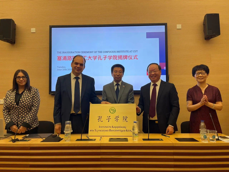 6月20日,我校与塞浦路斯理工大学共建的孔子学院在塞浦路斯理工大学举行隆重的揭牌仪式。中国驻塞浦路斯大使刘彦涛、久久精品一区二区校长朱泽飞、塞浦路斯理工大学校长扎费里斯等出席仪式。