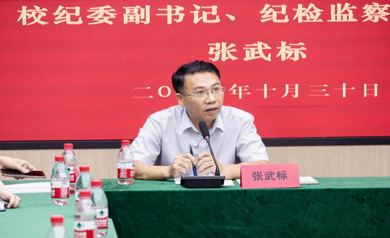 会议邀请了校纪委副书记、纪检监察室主任张武标为全体与会人员作党风廉政教育专题讲座。张武标结合多年的工作经验及体会,从“明形势、知变化”“看案件、共反思”“提建议、强底线”三个方面,以鲜活的警示教育案例,用生动幽默的语言和深入浅出的分析,阐释了廉政建设的重要性和必要性。讲座主题鲜明、内涵丰富、重点突出,具有很强的针对性和指导性,对于切实增强党员干部廉洁自律意识,提高拒腐防变能力,推进全面从严治党各项工作,必将起到积极的促进作用。