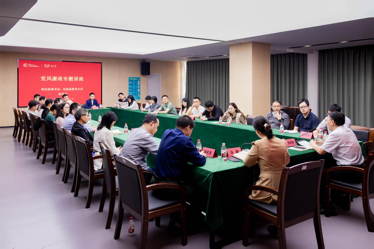 为加强基层党组织建设、创新基层党建工作载体、提高党建工作水平,10月30日下午,人文艺术与数字媒体学院、法学院与通信工程学院在校党建智治中心开展了党建联建暨党风廉政教育专题讲座活动。人艺数法学院党委书记冯瑛、院长王毅刚、副院长过山、副书记马化龙等班子成员及党委委员、纪委委员、支部书记、研究院院长、数字媒体技术党支部党员代表,通信工程学院党委副书记陈新峰、创新团队党支部支委及党员代表参加了本次活动,活动由人艺数法学院党委书记冯瑛主持。