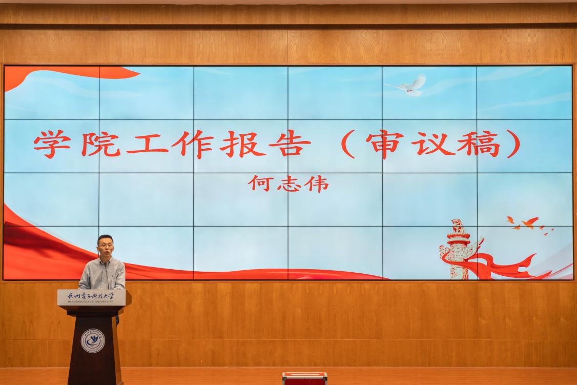 院长何志伟作学院工作报告,报告回顾了四年来电子信息学院(集成电路科学与工程学院)在党建思政工作、人才培养、科研创新、国际化师资队伍建设、一流学科建设等方面学院的各项事业取得的丰硕成果,指出下一阶段学院的工作思路是以习近平新时代中国特色社会主义思想为指导,将一流党建引领,实现一流条件支撑,争创一流与特色:即红芯文化传承创新,一流的人才培养,一流的科学研究,一流的社会服务,一流的师资队伍,有特色的国际化。瞄准高质量党建引领学院高质量发展,聚焦高质量突破,推进人才引育、学科建设、科学研究、教育教学创新攻坚,提升国际交流品质,凝心聚力,攻坚克难,开拓进取,为学院更加美好的高质量发展奠定基础。