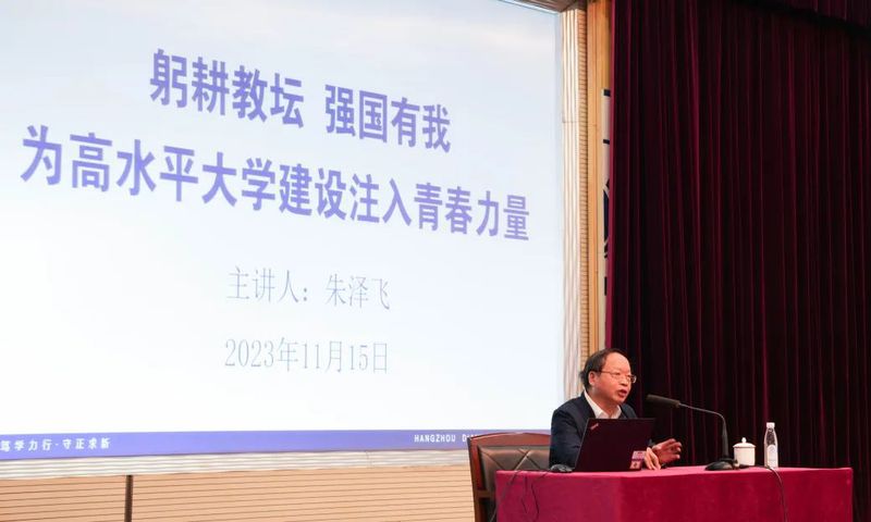 朱泽飞以《躬耕教坛,强国有我——为高水平大学建设注入青春力量》为题作了新进教职工第一课。他从学校改革发展历程、奋斗目标、学科建设、人才培养等方面,全面介绍了杭电的总体情况。并寄语新杭电人要成为塑造学生品格、品行、品味的“大先生”;争做“四有”好教师;坚持做大学精神的缔造者、传承者、力行者。