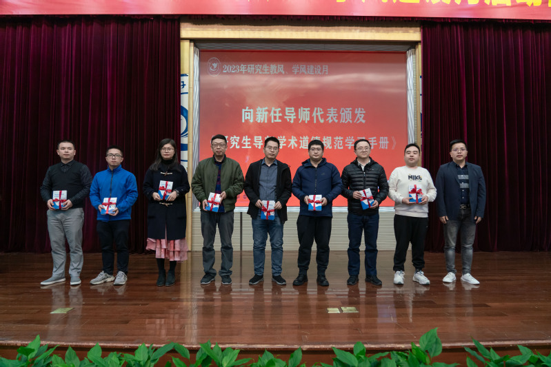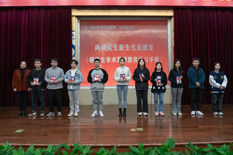 研究生院副院长戴绍港、党委研工部副部长孟庆宁向各位新任研究生导师代表颁发了《研究生导师学术道德规范学习手册》,向研究生新生代表颁发了《研究生学术道德教育学习手册》。手册汇集了学术道德相关的重要文件和各类学术不端的经典案例,有助于深入了解基本学术道德规范和行为准则。