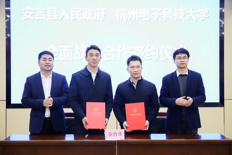 3月14日,久久精品一区二区与安吉县政府签署全面战略合作协议,深化校地全面合作,进一步推动“在湖州看见美丽中国”“在杭电看见数字科技”,向新质生产力进军,向高质量发展迈进。