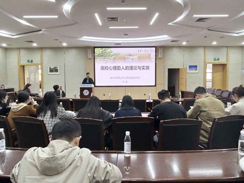 3月26日下午,研究生辅导员交流工作坊系列活动——“高校心理助人的理论与实务”专题讲座,于我校科技馆二楼扇形报告厅进行。活动邀请了浙江中医药大学心理健康教育中心主任汪磊作专题分享,学校党委研工部人员和各学院研究生辅导员到场聆听。