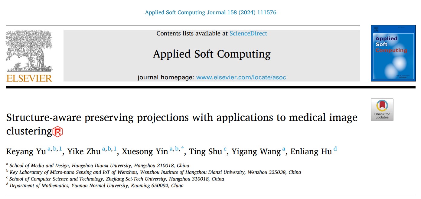 近日,我校人文艺术与数字媒体学院、法学院数字媒体技术专业本科生俞可扬在机器学习领域取得积极进展,提出了一种新的无监督降维算法,以第一作者身份在《Applied Soft Computing》发表了题为“Structure-aware preserving projections with applications to medical image clustering”的学术论文。该期刊为中国科学院1区TOP期刊,影响因子为8.7。论文共同一作为2020级本科生俞可扬和2022级硕士生朱奕珂,通讯作者为人文艺术与数字媒体学院、法学院尹学松教授,我校王毅刚教授、浙江理工大学舒挺副教授和云南师范大学胡恩良教授为共同作者。