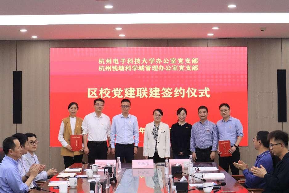 在联建活动中,学校办公室党支部与钱塘科学城管理办公室党支部,签署了双方党建共建协议,以党建引领科技创新,以联建密切政校企合作,推动政校企产学研全方位、多领域、深层次合作。与会人员集体参观了“在杭电看见数字科技”成果展和军民融合展,开展了国家安全与保密教育培训,围绕产学研深度融合及创新合作模式等问题进行了深入的研讨和交流。