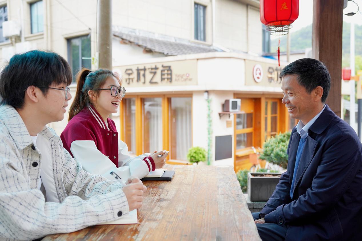 当日,宣讲团还来到“两山理论”发源地——安吉县天荒坪镇余村,对村民进行了走家入户式宣讲。宣讲中,天荒坪镇农家乐协会会长、最早在村里创建农家乐的潘春林感慨道:“好生态成为金名片,绿水青山成了我们与村人的增收来源,余村现在新业态不断涌现,更需要数字科技的助力。我儿子也在杭电自动化学院读研究生,我们也很期待他毕业后回到余村运用数字科技助力美丽安吉建设。”