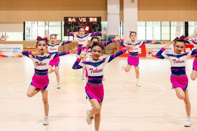 我校附属小学的23名“篮球宝贝”在开场和中场休息时间给全场带来精彩的啦啦操表演,为比赛助阵,给现场增加轻松活泼的气氛。