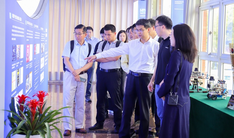 6月7日上午,吉利控股集团高级副总裁、吉利创新中心常务副主任沈源等一行来校调研,校党委书记吴卿、副校长颜成钢陪同参观了“在杭电看见数字科技”成果展,相关职能部门以及学院负责人等参加座谈会,颜成钢主持座谈会。