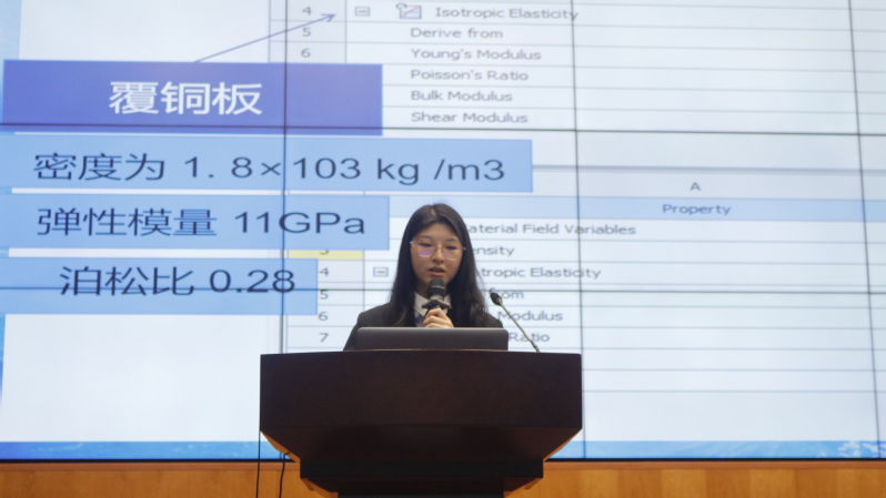 本次比赛共有15组选手在168件初赛作品中脱颖而出,选手们通过PPT展示自己的作品,作品主要涵盖激波管膜破裂行为模拟、印刷电路板模态分析、飞机起落架强度仿真分析等海陆空天装备的零部件仿真分析,将学科内容与实践应用进行了深度结合。