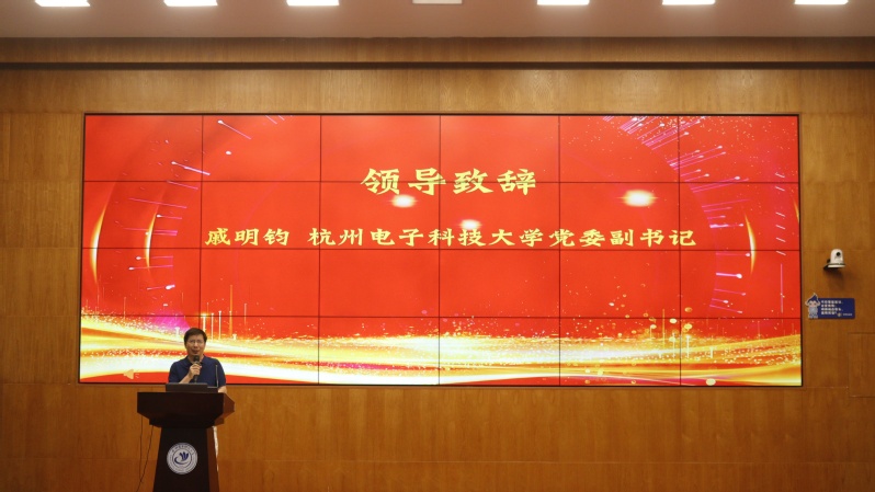 校党委副书记戚明钧为大赛颁奖仪式致辞。他结合学校学科特色,指出学校坚持竞赛育人,注重在创新实践活动中养成学生的创新能力。他希望同学们主动围绕国家和浙江省数字经济、新材料和先进制造对高端装备的需求,进一步树立高端装备报国的伟大理想,为突破装备制造关键技术而努力奋斗,为实现浙江省“两个先行”奋斗目标贡献杭电力量。