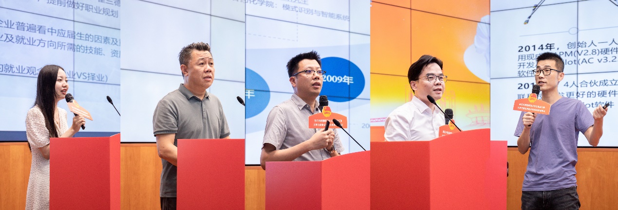 活动邀请我校校友浙农集团股份有限公司招聘经理毛越凡、浙江和山环能资源有限公司总裁章击舟、咸亨国际研发总监李文国、浙江省交通投资集团有限公司总部办公室(董事会秘书处)副主任郑建勇、浙江中德智能制造创新研究院常务副院长金洁分析了当今大学生就业形势,向同学们讲述了职业规划的要点,要确定自己的职业定位,明确自己的职业目标和方向,根据职业定位,规划出合适的自己的职业发展路径。