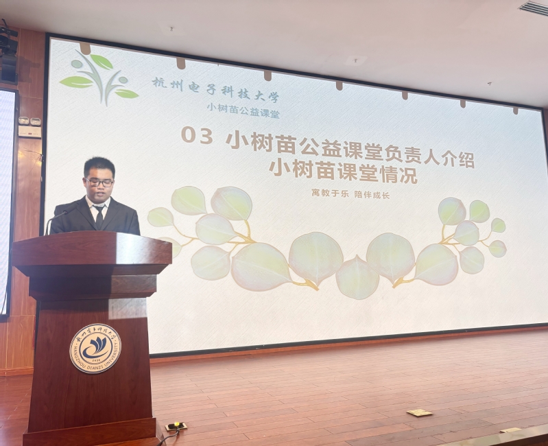 来自电子信息学院的2024年度小树苗公益课堂学生负责人张金正同学介绍了小树苗公益课堂的发展历程和本次小树苗公益课堂的筹备情况、志愿者招募情况、小朋友报名情况及授课计划。他表示,2013年小树苗从后勤职工子女学校开始,到下沙高校的青协团队加入、到文小二工作室的承办;从一对一的课后辅导到课堂辅导、到2020年第一次暑期班;从服务后勤、保卫处子女扩展到了全校教职工子女,离不开后勤服务中心各部门和学校相关部门的关心支持,而工作团队和志愿者们也不负所托,不断丰富课程内容,不断完善规章制度、加强安全教育,更是抱着一颗“感恩的心”来陪伴小朋友们。来自机械工程学院何瑜鑫作为志愿者代表发言。他认为,小树苗一次支教活动,大学生通过在对青少年儿童的寓教于乐的教育中寻找到奉献社会的乐趣,同时也是传承好尊老爱幼的中华优秀传统美德的接力棒。作为小树苗志愿者,不仅肩负着一份特殊的责任和使命,更是爱心的传递和延续。