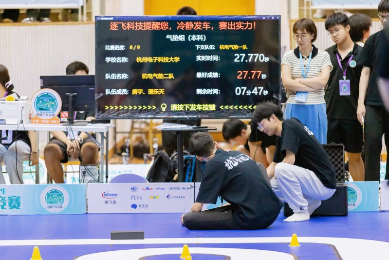 本次竞赛共设电磁组、镜头组、气垫组、摩托组、视觉组、模型组、越野组、独轮组等8个竞速赛组别和地平线智慧医疗挑战赛1个创意赛组别。在陈龙、黄继业、余善恩、颜斌等指导教师的精心指导下,队员们沉着冷静,各队均有不俗表现。由王劲、郑博闻和杨佳翰组成的“杭电电磁一队”,由张森、李雨荷和周政飞组成的“杭电电磁二队”,由施熠、黄翔和钱俊彦组成的“杭电竞速STC一队”,由谢文灿、施文镔和王子豪组成的“杭电竞速英飞凌一队”,由许柯翰、王梦晗和唐笠雄组成的“杭电竞速NXP一队”,由蔡宇、杨磊和吴可组成的“杭电气垫一队”,由李子木、唐宇和琚乐天组成的“杭电气垫二队”,由李佺佺、厉雨豪、张存辉、吕兴和周骞煜组成的“杭电智能视觉一队”,由李明祥、朱保昊、赵皓衡、唐毅欣和王佳宇组成的“杭电完模二队”,由王伟柳、徐晨茗、王晨璐、贾大伟和温成昊组成的“杭电完模一队”,由刘皓文、张煜和李銮舆组成的“杭电越野二队”,以及由陈炫卓、崔如意、马超、仵航和周宇科组成的“杭电地平线2队”等12支队伍获得本届竞赛一等奖。
