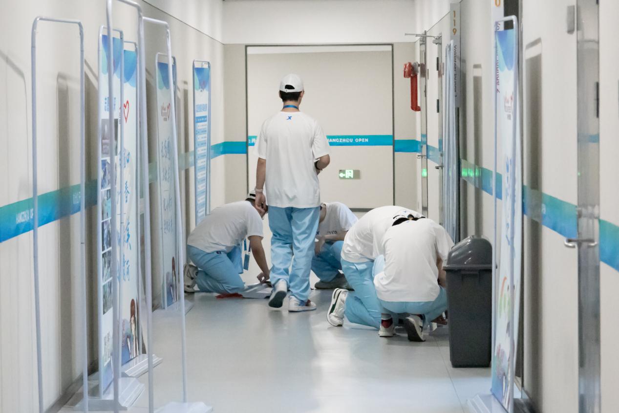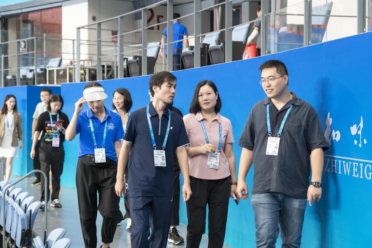 开赛第一天早上,“小青荷”们已整装待发,为赛事服务做好充分准备。值此中秋佳节,杭州市体育集团党委委员、副总经理、赛事副指挥长郑吉林,久久精品一区二区校团委书记邹昕瑶,杭州市志愿者工作指导中心主任陈碧红,杭州市体育集团党群工作部(人力资源部)部长朱妤一行来到“小莲花”,亲切慰问各个岗位上的志愿者并送上中秋祝福。