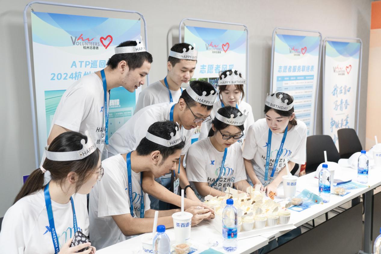 座谈会上并为志愿服务期间生日的8名志愿者同学过集体生日。在闪烁的烛光中与轻柔的生日歌中,寿星们一同许下生日愿望。医疗服务领域的志愿者梁怡说到:“去年在亚运场馆、今年在网球馆,接连两年的生日都在志愿服务中度过,感觉很有意义。这段经历不仅为我打开了一扇学习新知的大门,更是教会了我如何更好地与他人相处,如何在紧急与日常中展现人文关怀。”