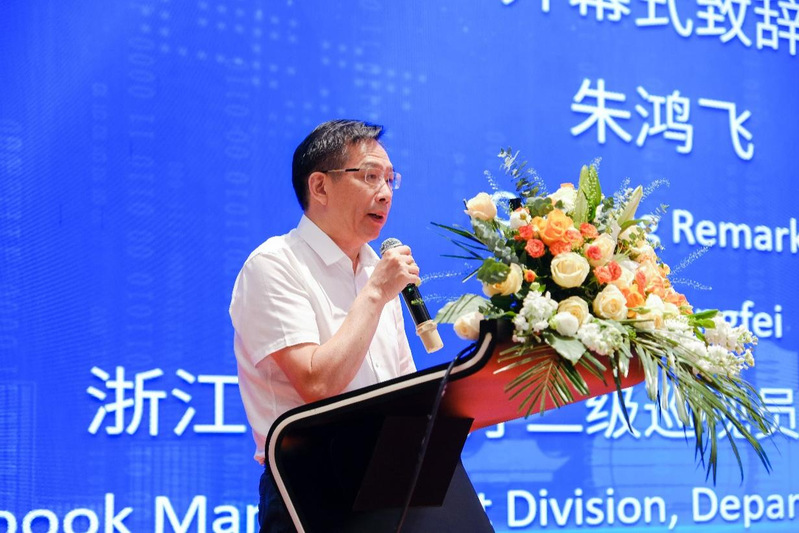 浙江省教育厅教材管理处朱鸿飞处长代表支持单位致辞,希望本次大会能集思广益、共同探讨智能制造工程专业的发展和教材的建设新思路、新方法和新理论,为建立完善的智能制造专业培养体系提供全方位的指导,为浙江省智能制造专业教材建设提供更有力的支持。