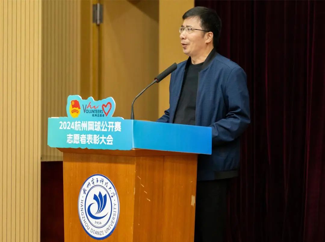 践行志愿精神,传播先进文化。10月23日下午,2024杭州网球公开赛志愿者表彰大会在我校科技馆报告厅举行。校党委副书记戚明钧,杭州团市委副书记阮伟哲,杭州市体育集团党委委员、副总经理郑吉林,杭州市志愿者工作指导中心主任陈碧红参加大会。