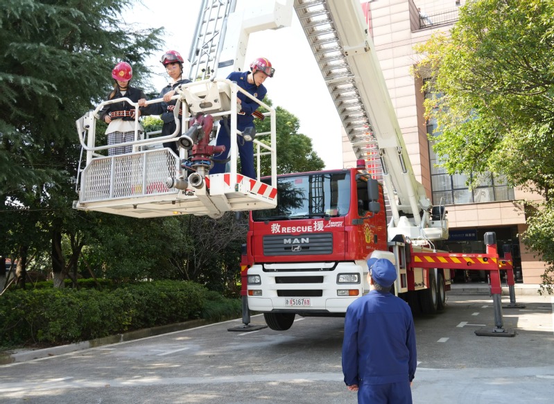 为了进一步提升师生的消防安全实践能力,学校还联合下沙消防救援站在图书馆开展了高层建筑救援演练。演练中,消防官兵们使用了消防云梯车等先进设备模拟疏散高层被困人员,展示了高超的救援技能。同时,志愿消防队校外辅导员还进行了消防安全知识讲座,为师生们提供了更加深入的消防安全知识培训。
