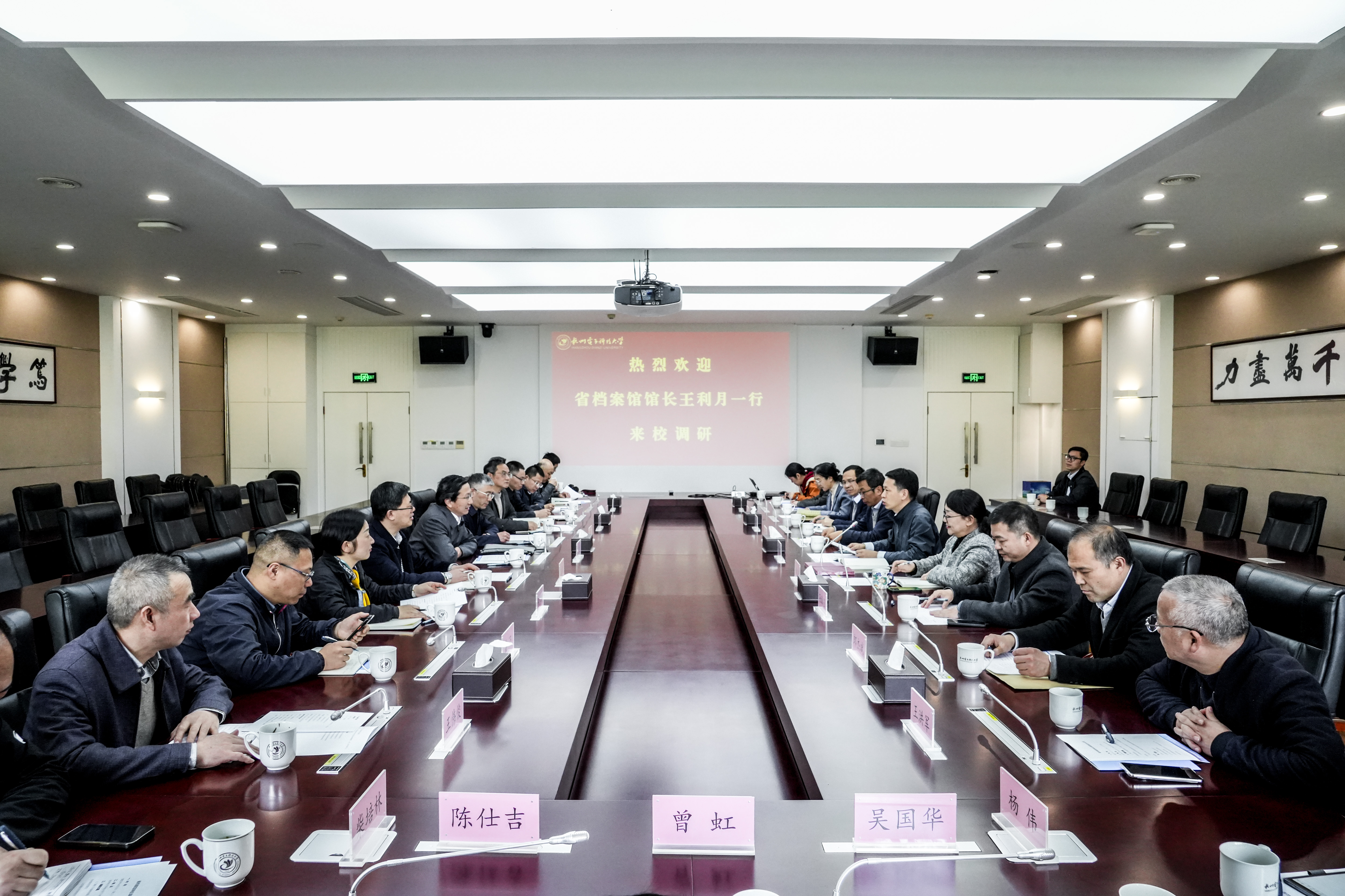 4月2日上午,省档案馆馆长王利月一行来校调研,学校校长陈积明出席并致欢迎辞。省档案馆副馆长李军、王健,馆务会议成员、办公室主任、二级巡视员吴新宇,我校党委副书记钱波,党委委员、组织部、统战部部长、机关党委书记孔万增参加,座谈会由钱波主持。