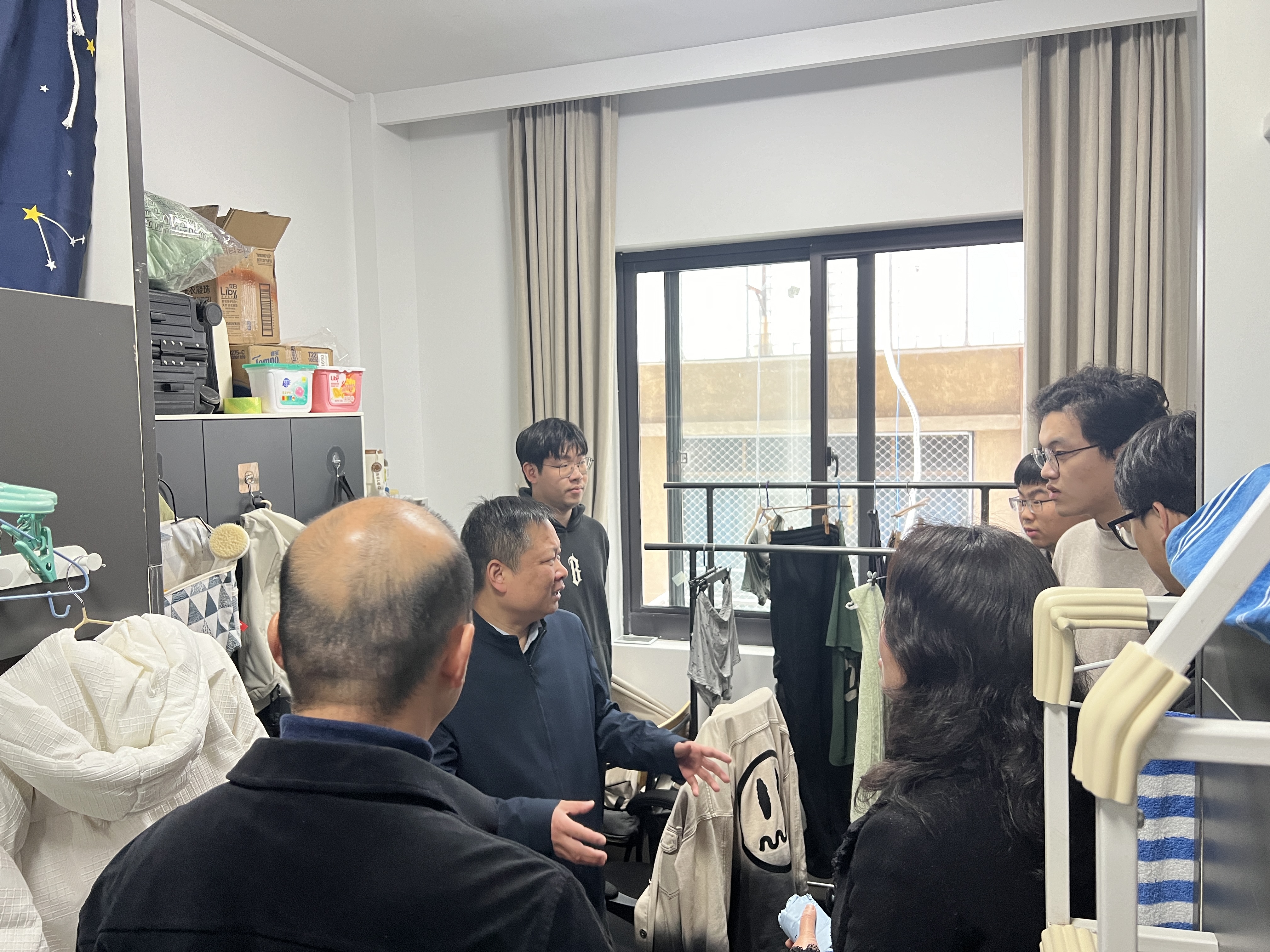 在调研过程中,校领导细致查看了实验大楼、宿舍楼及办公用房等基础设施,通过实地走访、现场问询等方式,全面了解校区房产资源的使用现状及存在的突出问题。其间,校领导与首批入住学生代表进行了亲切座谈,认真听取学生对生活设施的使用反馈,并重点检查宿舍家具、洗衣、供暖、饮用水供给等条件、智能化管理系统等改造项目的实施效果。