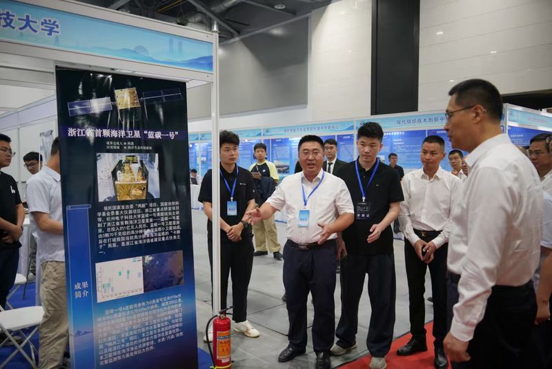 活动期间,学校选送了安全存储、蓝碳一号、生物制造系统化设备等7项科技成果及“新一代长寿命钠离子电池正极材料”等3项学生科技成果进行集中展示。省领导卢山一行亲临学校展位,校产学研融合发展中心主任李虎着重向展位前的各位领导介绍了“蓝碳一号”等优秀科研成果、相关科研团队和对接需求等情况。卢山对我校展出的科技成果表示肯定,询问了相关科研攻关和产业应用情况,并希望我校继续产出更多高质量的科研成果。