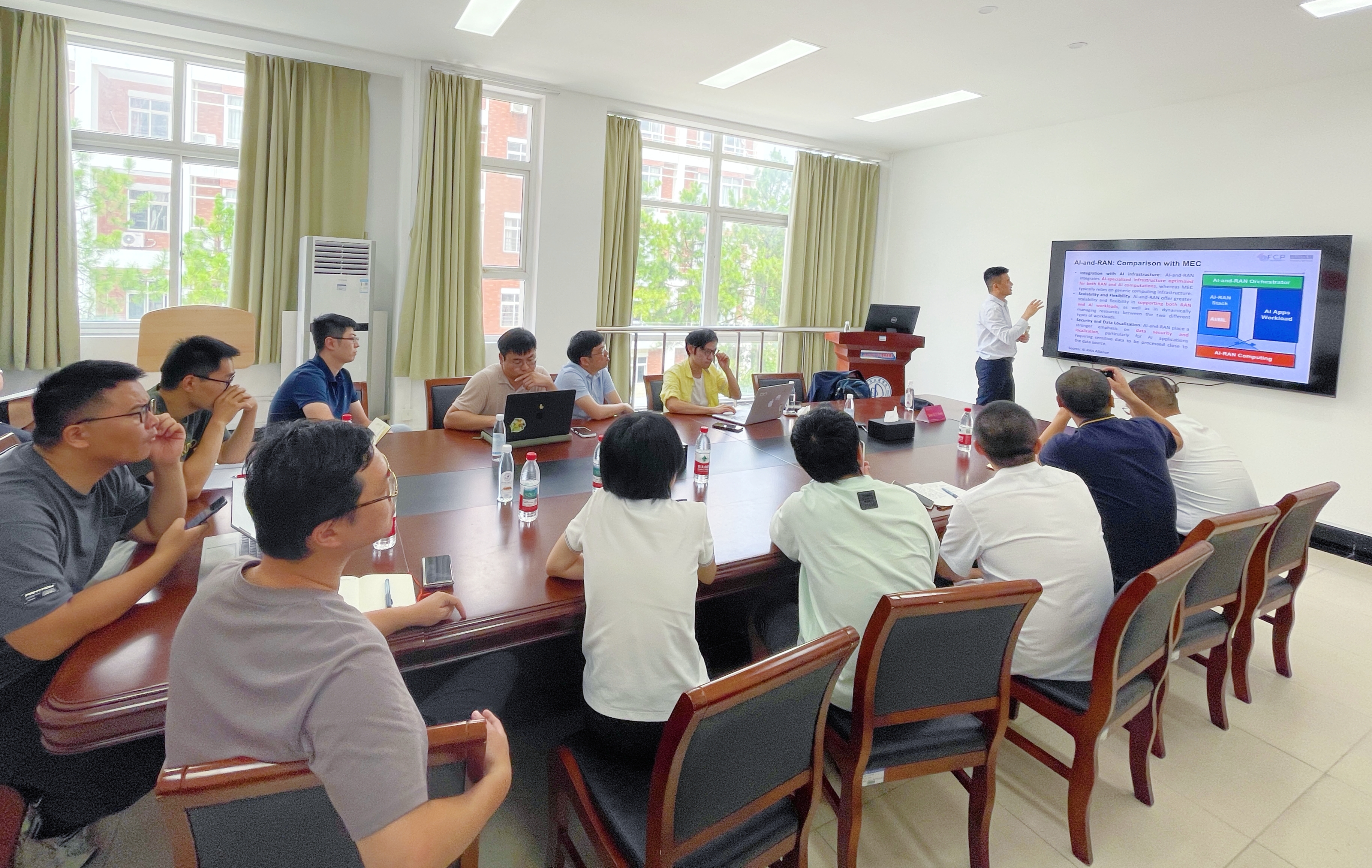 浙江大学海宁校区研究员刘佐珠、杨浩,信电学院教授单杭冠陪同交流,学校发规处、研究生院、教务处、科研处、国际处、产学研融合发展中心、通信学院等相关负责人和专家团队代表参加座谈和报告会。
