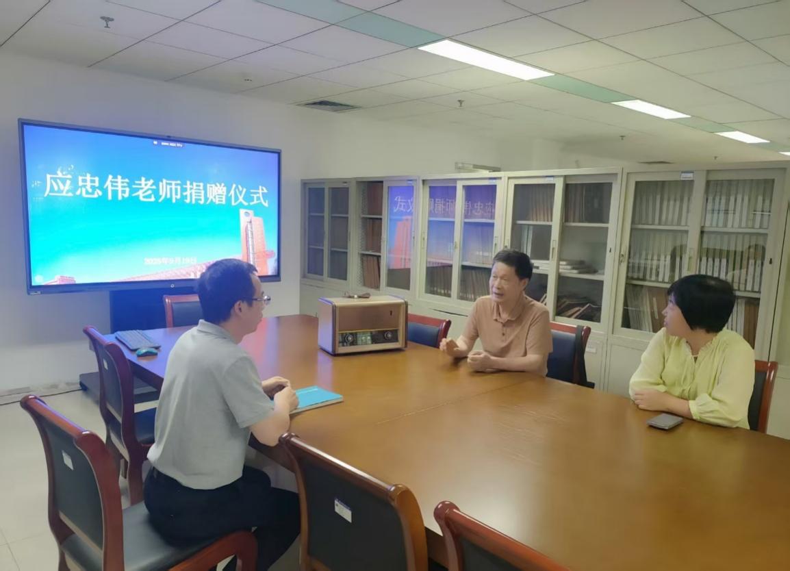 9月19日下午,一场温馨而庄重的实物档案捐赠仪式在档案馆举行。退休教师应忠伟老师将家中一台珍藏多年依旧保存完好的熊猫牌电子管收音机无偿捐赠给学校档案馆。离退休工作处处长王海南、档案馆馆长余玉龙出席了捐赠仪式。
